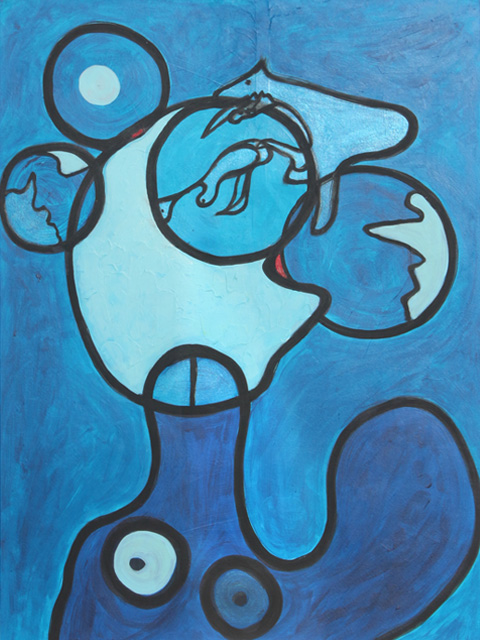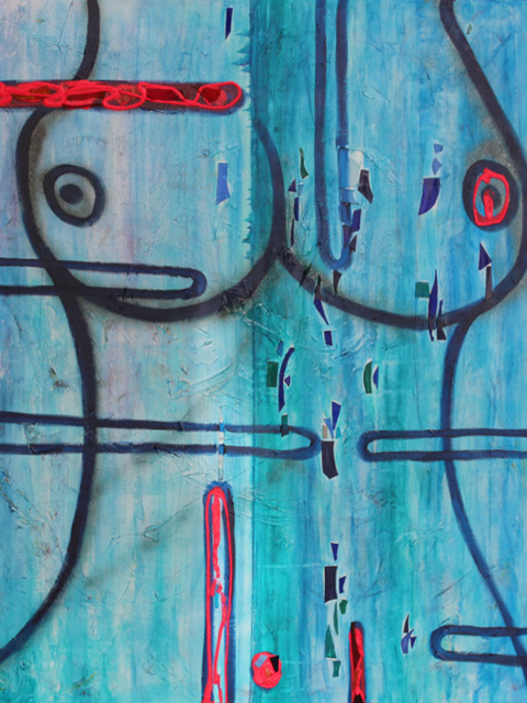 Her work explores the process of creation and combines classic colour theory with new ideas for making paint. For example: what happens when you use milk to produce a colour? The manner in which paint is applied: what lies beneath the top, visible layer is an important part of the story of creation. As she says: "I work with many layers of paint, as many as 20. Underneath these layers are letters, quotations or other drawings. It through all these layers that the composition achieves its depth and intensity."